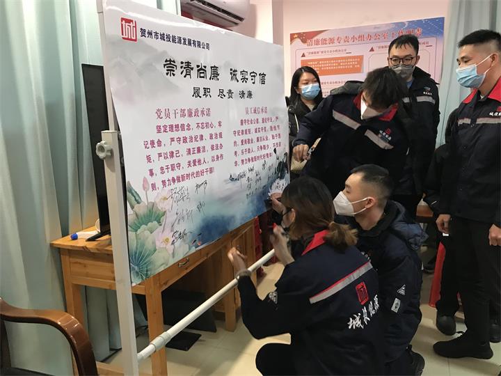 活動最后全體干部職工集體在《崇清尚廉 誠實守信》廉潔承諾展板上簽名。