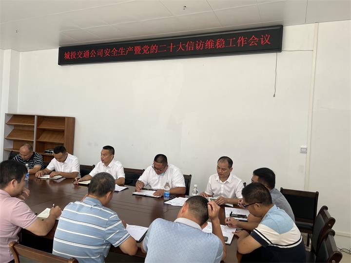同日,交通公司召開安全生產(chǎn)與黨的二十大信訪維穩(wěn)工作會議。會議指出,做好安全生產(chǎn)與黨的二十大信訪維穩(wěn)工作責(zé)任重大,要站在講政治、顧大局的高度,保持清醒頭腦,認清嚴峻形勢,切實增強“時時放心不下”的政治責(zé)任感,嚴而又嚴、實而又實地防風(fēng)險、保安全、護穩(wěn)定,堅決防止各類安全事故、信訪事件發(fā)生,努力為黨的二十大勝利召開營造安全穩(wěn)定的環(huán)境。