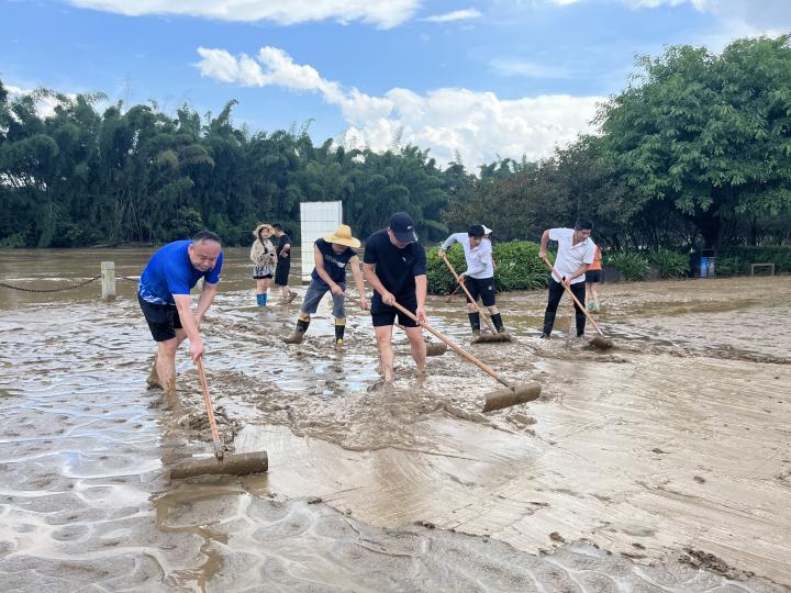 發(fā)布時(shí)間:2024-06-17 作者:文字:陳曉雯 圖片:程梅娟 來(lái)源: 審核:葉茂桃 吳姍近日,我市遭遇強(qiáng)降雨,賀江水位迅猛上漲,城區(qū)部分區(qū)域范圍遭受不同程度的災(zāi)害影響,沿江而建的北堤公園因河水上漲也被洪水淹沒(méi)。隨著洪水退去,大量淤泥、雜物殘留在北堤公園河岸兩側(cè)。為盡快恢復(fù)北堤公園美麗整潔面貌,6月16日,城市運(yùn)營(yíng)公司副總經(jīng)理劉立忠率領(lǐng)城投物業(yè)公司全體干部職工攜帶高壓水管、鐵鏟、掃帚等工具趕赴北堤公園內(nèi)澇路段清理積水、淤泥。