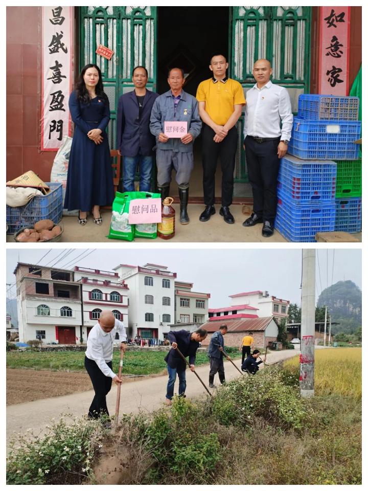 何金存同志1976年3月參軍入伍,在對越自衛(wèi)反擊戰(zhàn)中負責(zé)物資保障工作,大家聽著何金存老人訴說那段崢嶸歲月,不由得紅了眼眶,對他們?yōu)閲易鞒龅呢暙I表達了崇高敬意并自發(fā)幫助老人清理門前道路兩旁的雜草,送上了米、油等生活物資,并囑咐他在日常生活中保持良好的心態(tài),科學(xué)飲食,保重身體。一句句問候、一聲聲祝福,讓何金存老人家感受到了黨組織濃濃的關(guān)愛和作為退役軍人的榮譽感與自豪感。